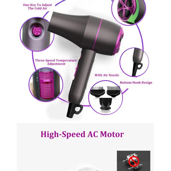 Professional Negative Ion 1800W Powerful AC Motor Gray Nylon Hair Dryer Images |